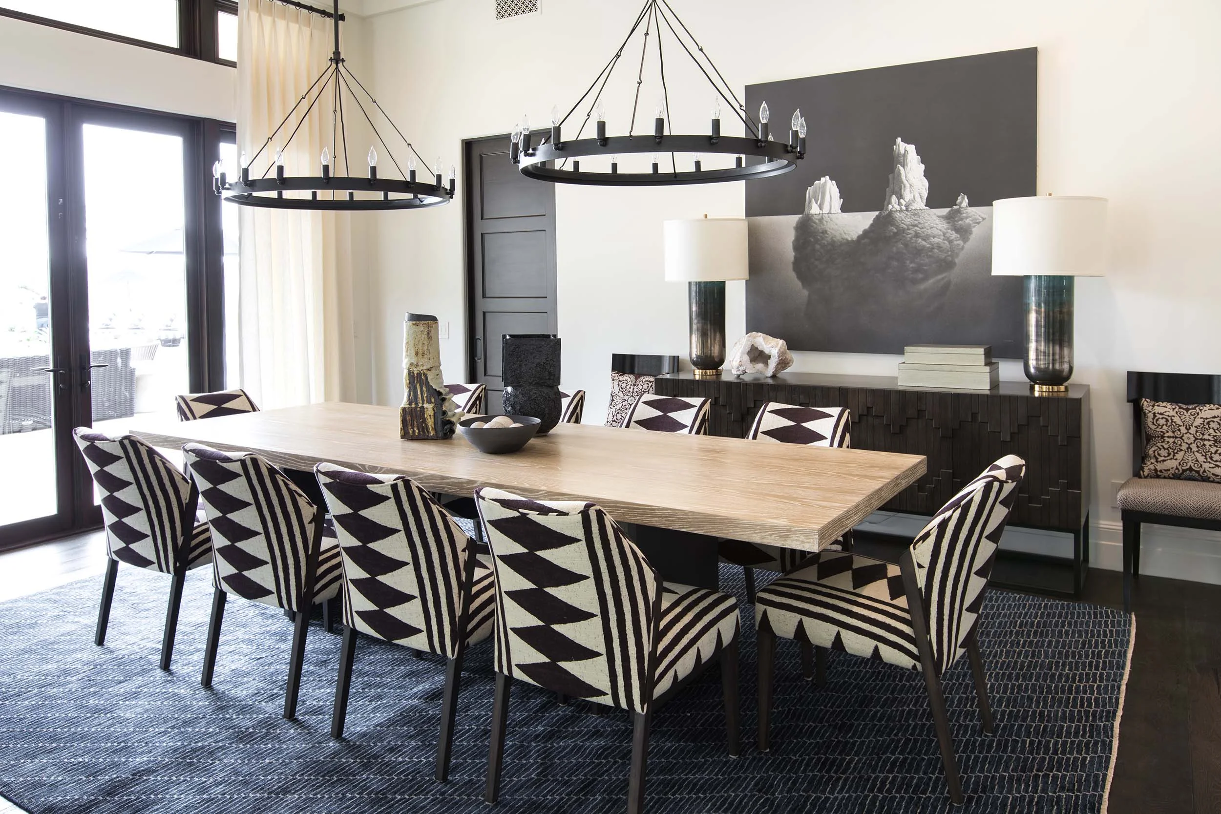 This three story, 9,500+ square foot Modern Spanish beauty features 7 bedrooms, 9 full and 2 half bathrooms, a wine cellar, private gym, guest house, and a poolside outdoor space out of our dreams. I spent nearly two years perfecting every aspect of the design, from flooring and tile to cookware and cutlery. With strong Spanish Colonial architecture, this space beckoned for a more refined design plan, all in keeping with the timeless beauty of Spanish style. This project became a favorite of mine, and I hope you'll enjoy it, too.