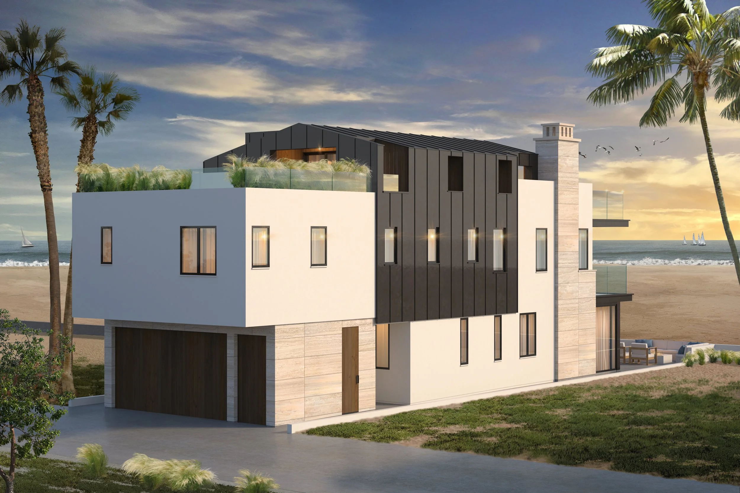 Lots of beautiful glass and dark finishes will create a modern beach house. A timeless approach and classic architecture will allow this house to stand the test of time.
